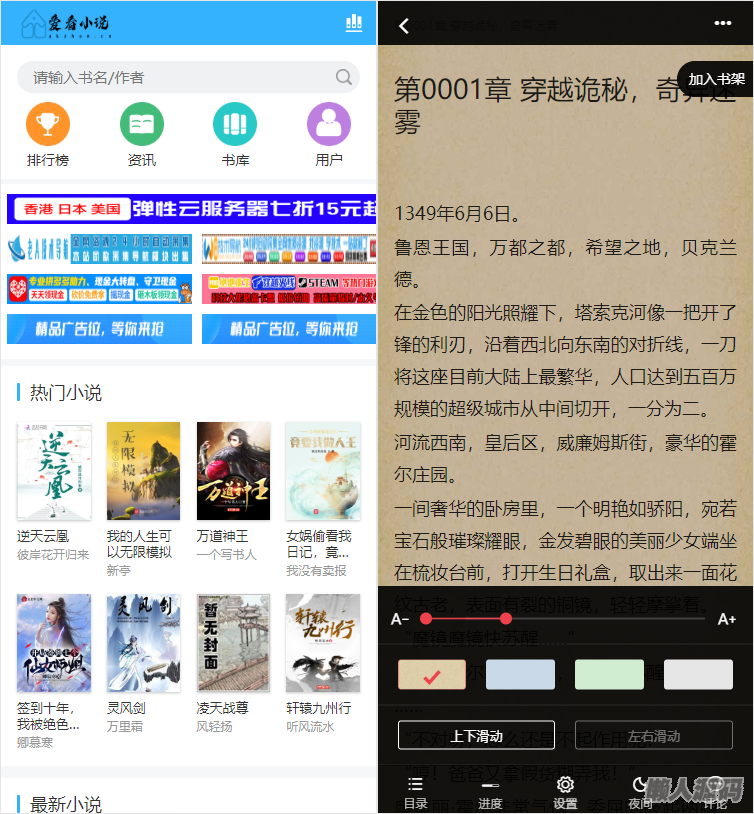 懒人源码 » 价值1500元的狂雨小说二开版,爱看小说网2W本全站打包源码