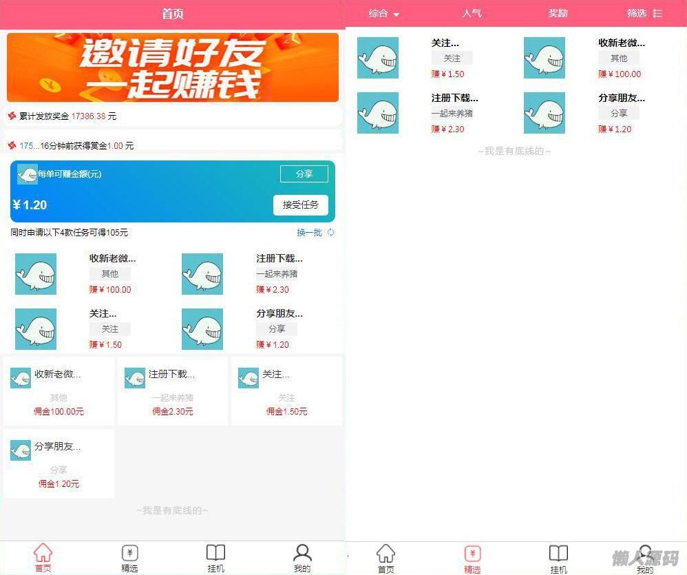 懒人源码 » 任务接单平台源码自动挂机阅读文章赚钱系统-附高清视频教程