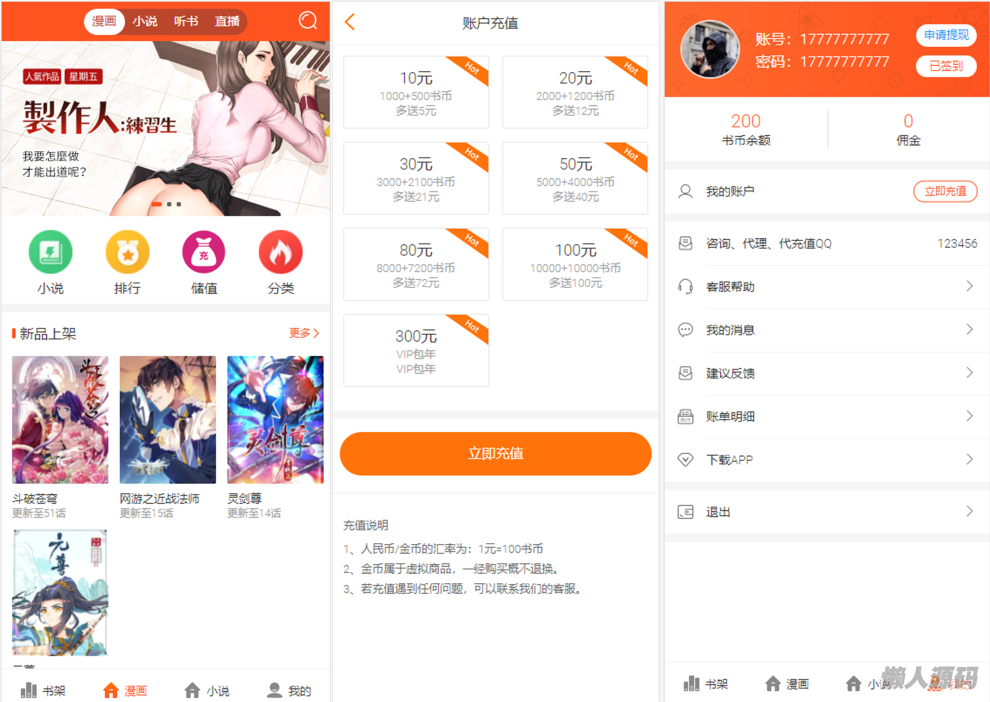 懒人源码 » 最新二开版漫画小说听书三合一分销平台完整源码/整合免签约支付接口/搭建教程/火车头采集接口