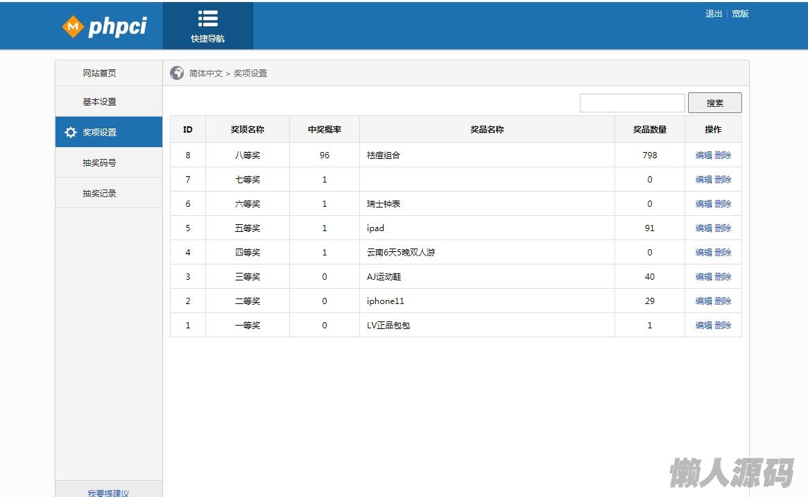 懒人源码 » php开发的抽奖系统源码,幸运九宫格类型的,带后台可控制