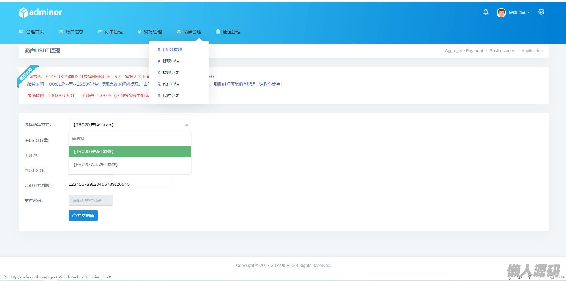 懒人源码 » 最新版UI集成USDT提现功能的四方聚合支付系统+修复XSS漏洞和补单漏洞,附安装教程