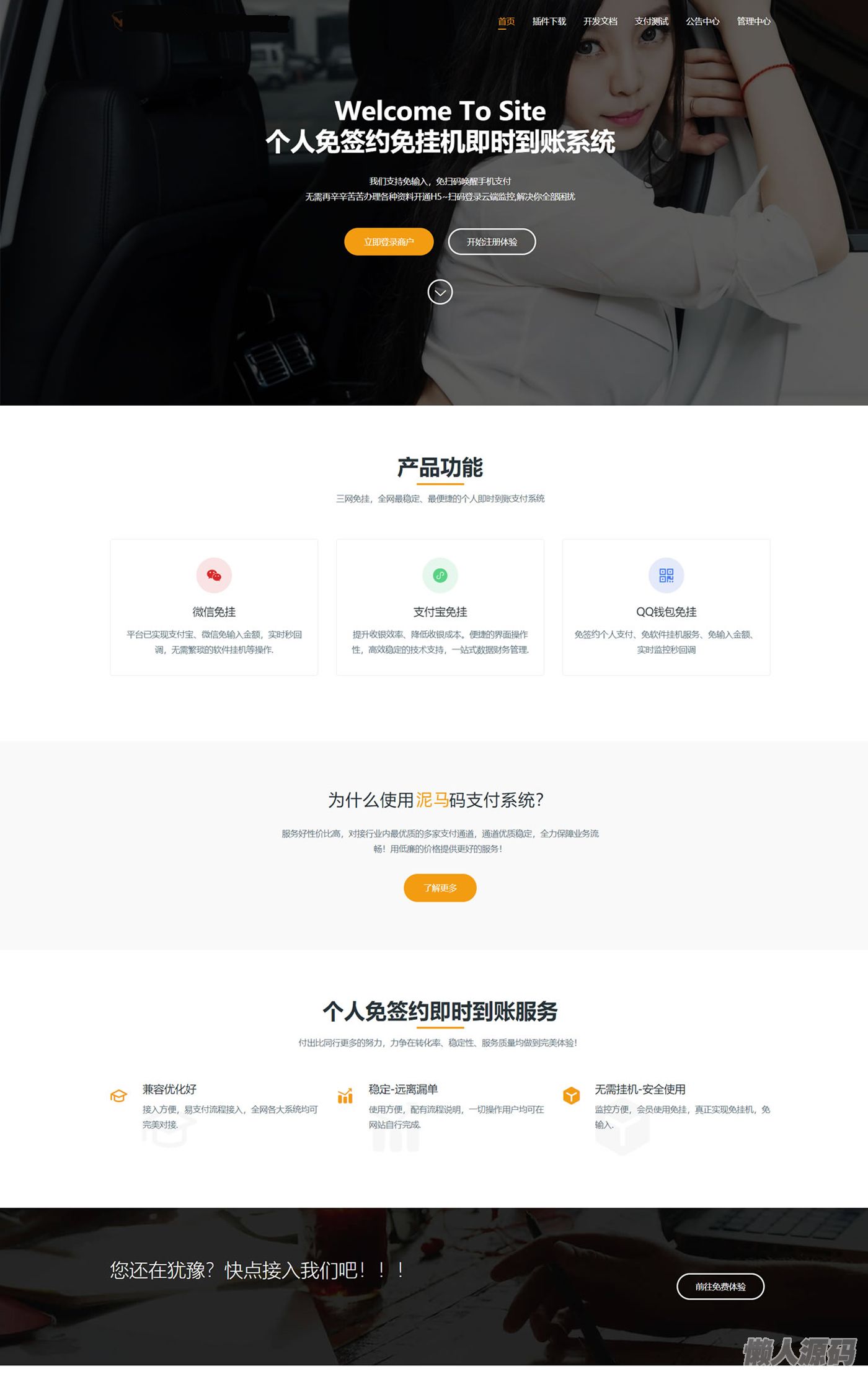 个人免签约免挂机码支付系统源码+即时到账系统+微信店员监控插件