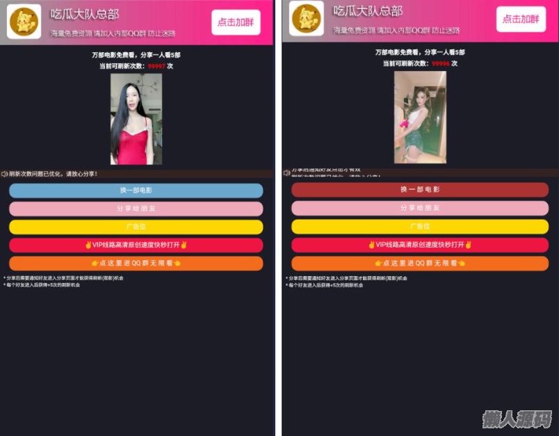 懒人源码 » 随机小姐姐视频分享打赏裂变PHP源码,qq群微信群强制加群