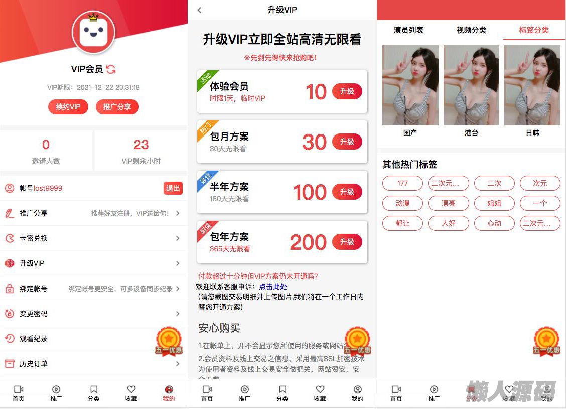 懒人源码 » 二开版麻豆影视CMS完整运营源码/新版漂亮APP手机模板/超强会员分销功能及多种会员/对接免签约支付接口/带文