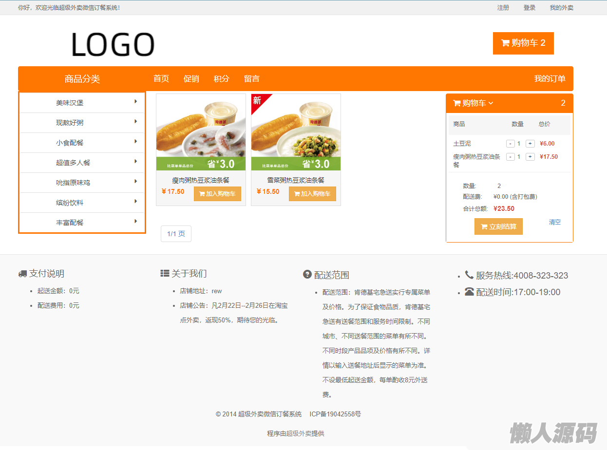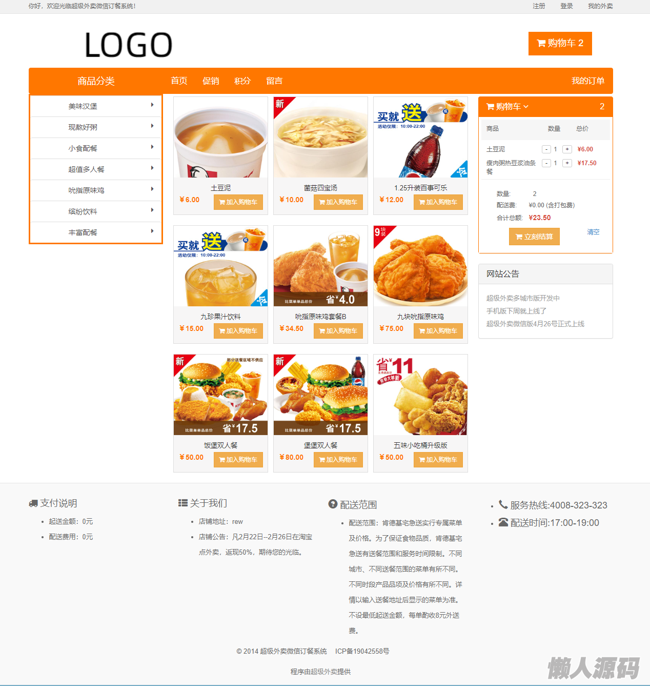 懒人源码 » 超级外卖单店铺2.1版_SuperCms在线订餐系统源码