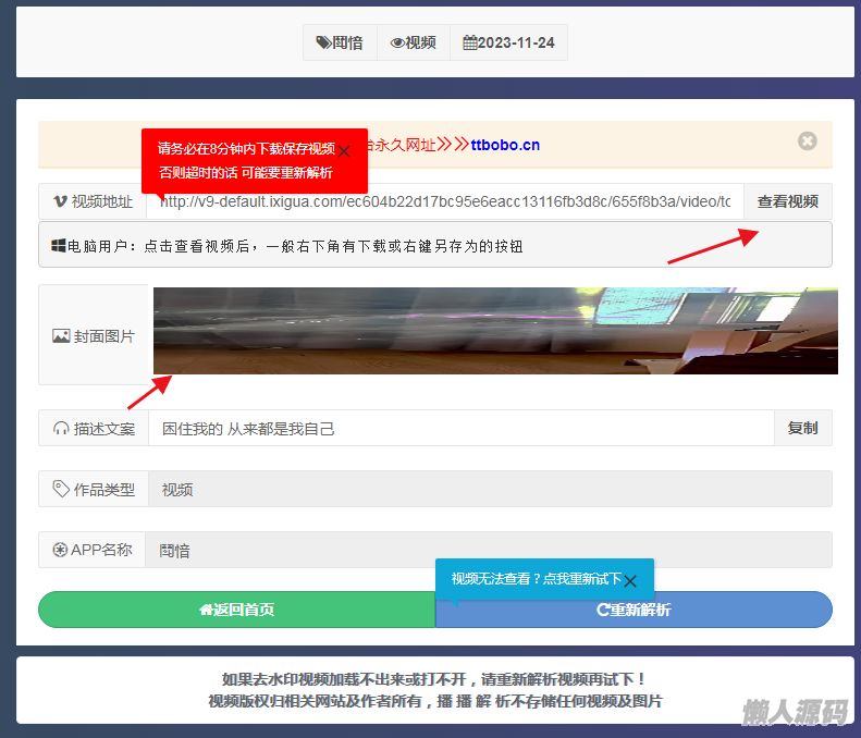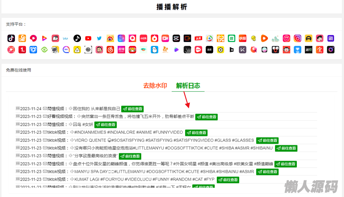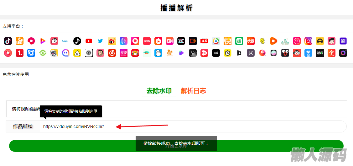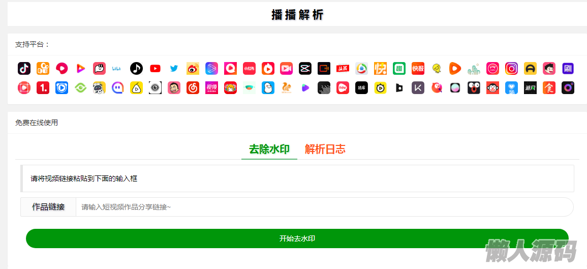 懒人源码 » 抖音快手小红书tiktok皮皮虾微视等几十种平台视频解析下载去水印网站源码