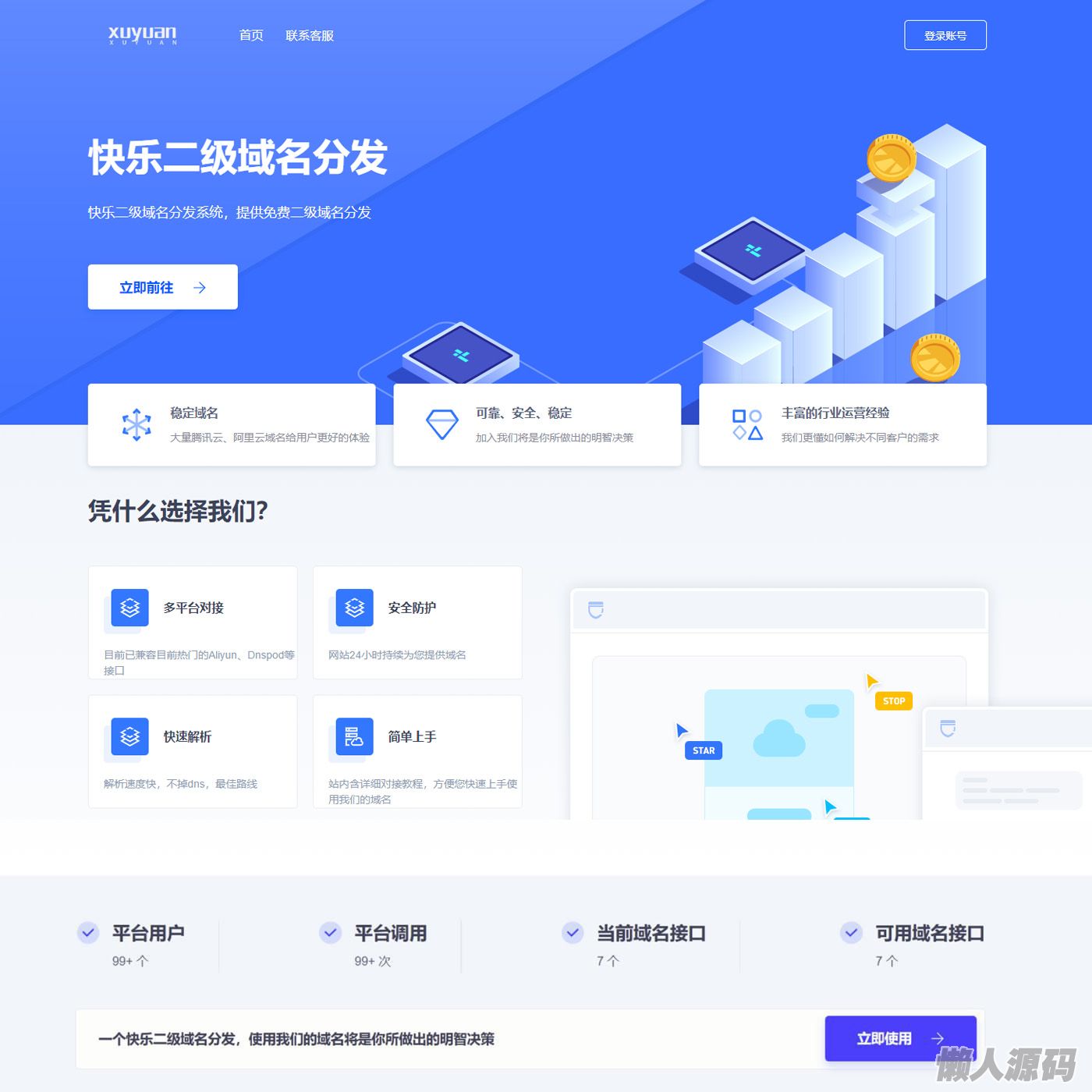 懒人源码 » 二级域名分发系统网站美化版源码