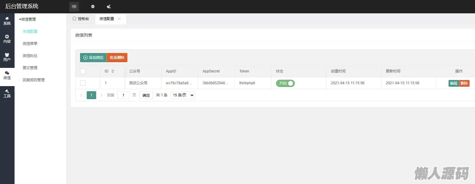 懒人源码 » 基于thinkphp6开发的多微信公众号管理系统CMS源码,带一键CURD等功能