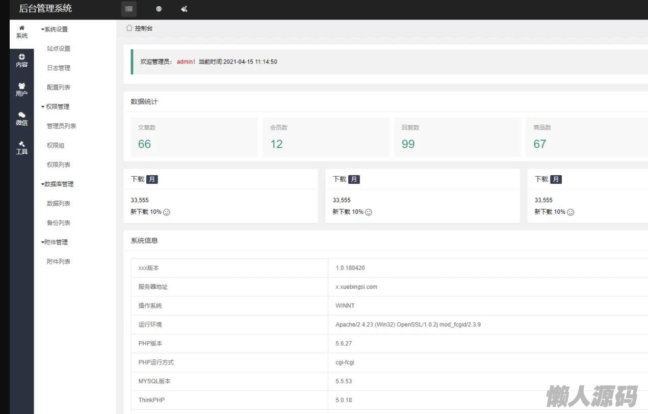 thinkphp6–cms多管理系统源码,后端基于Thinkph6框架,前端基于X-admin2.2、layui2.5.x