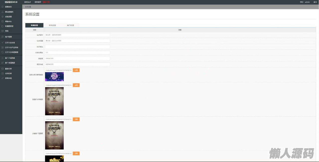 后台系统设置这里有关你网站信息的配置都在这里了,然后是和接口