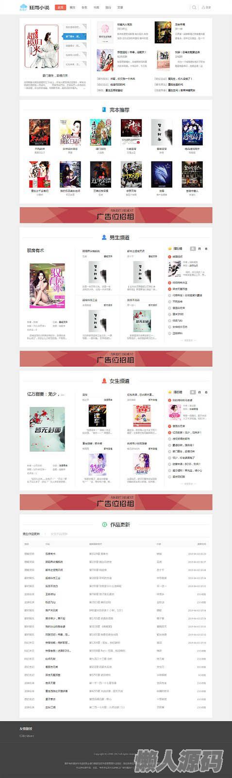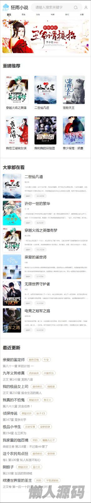 懒人源码 » 狂雨小说CMS全插件系统_听书+百度推送+收费白色pc手机模板+3个采集规则+单本采集
