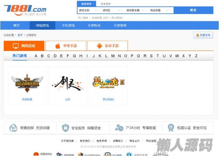 【物品交易源码】7881装备网源码/可做点卡和网站源码网