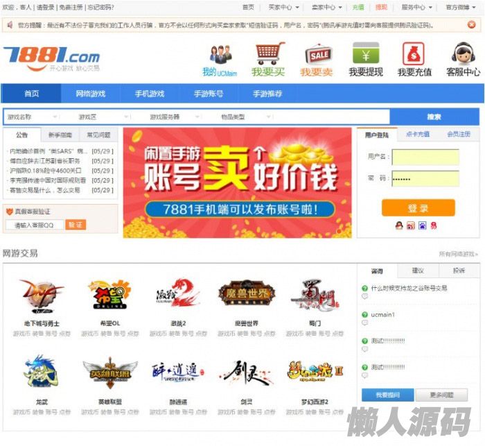懒人源码 » 价值八千元仿7881游戏装备网虚拟物品交易源码修复版