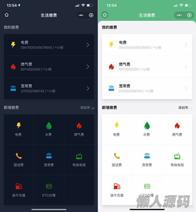 懒人源码 » 仿微信支付生活缴费小程序源码