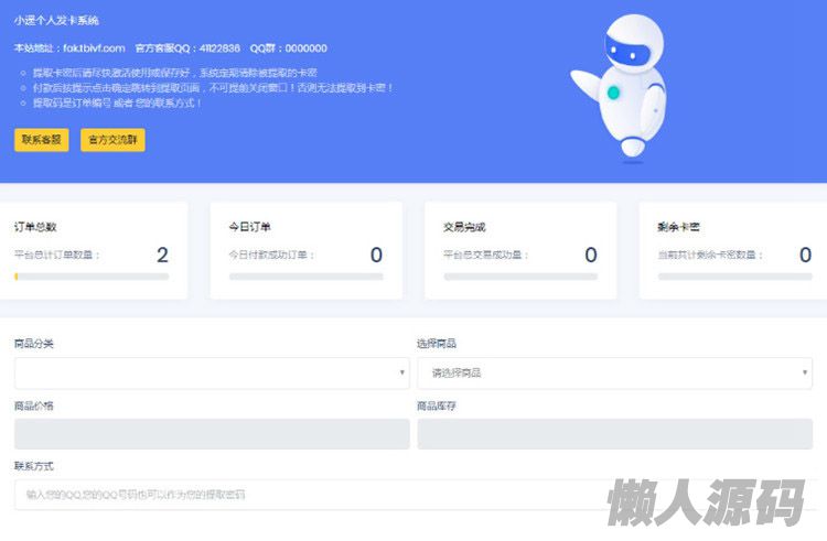懒人源码 » 最新个人发卡系统全开源无加密源码下载 无限制版