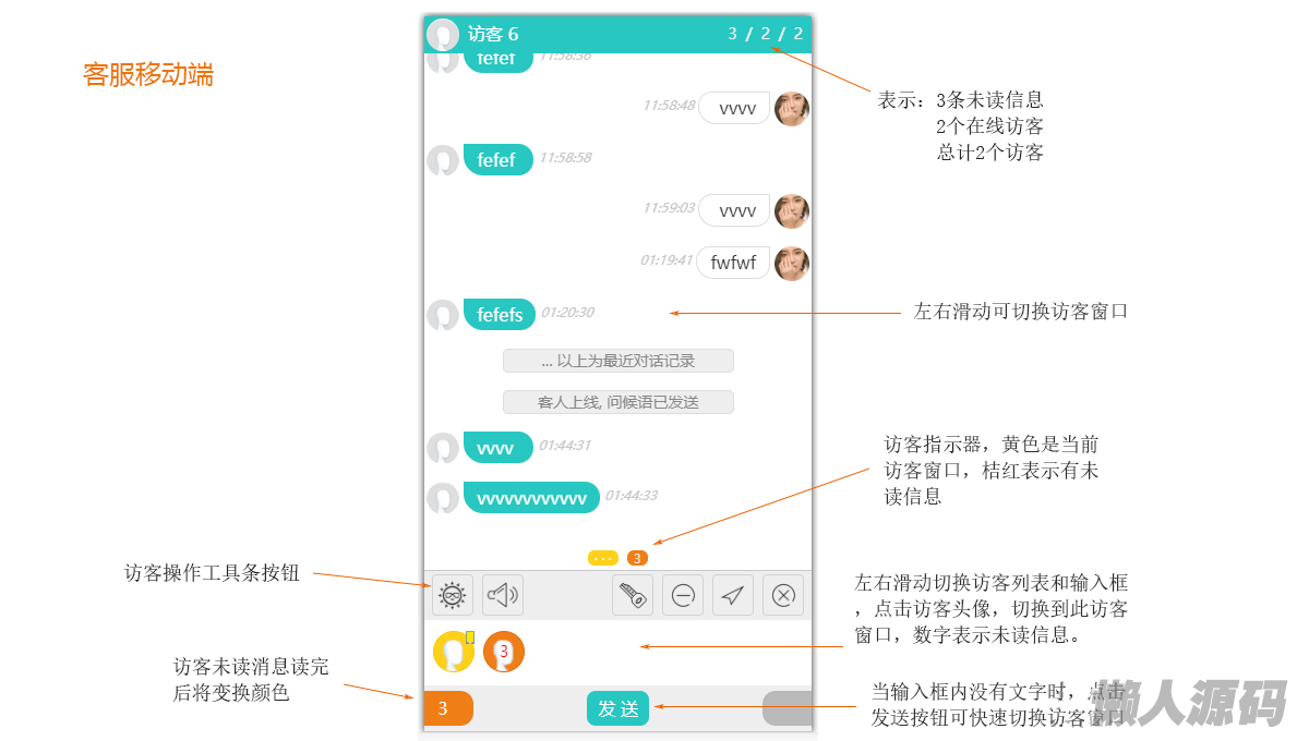 9. 客服窗, 可实时显示客人的输入状态及正在输入的文字;