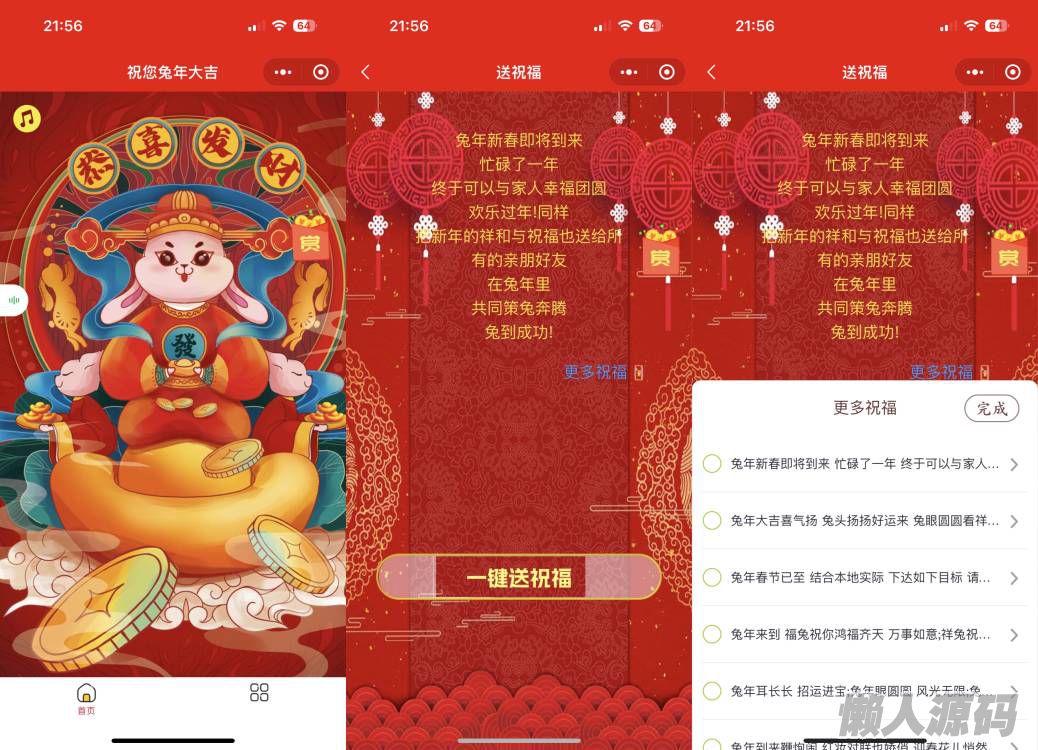 懒人源码 » 2023新年送祝福微信小程序源码下载 支持流量主