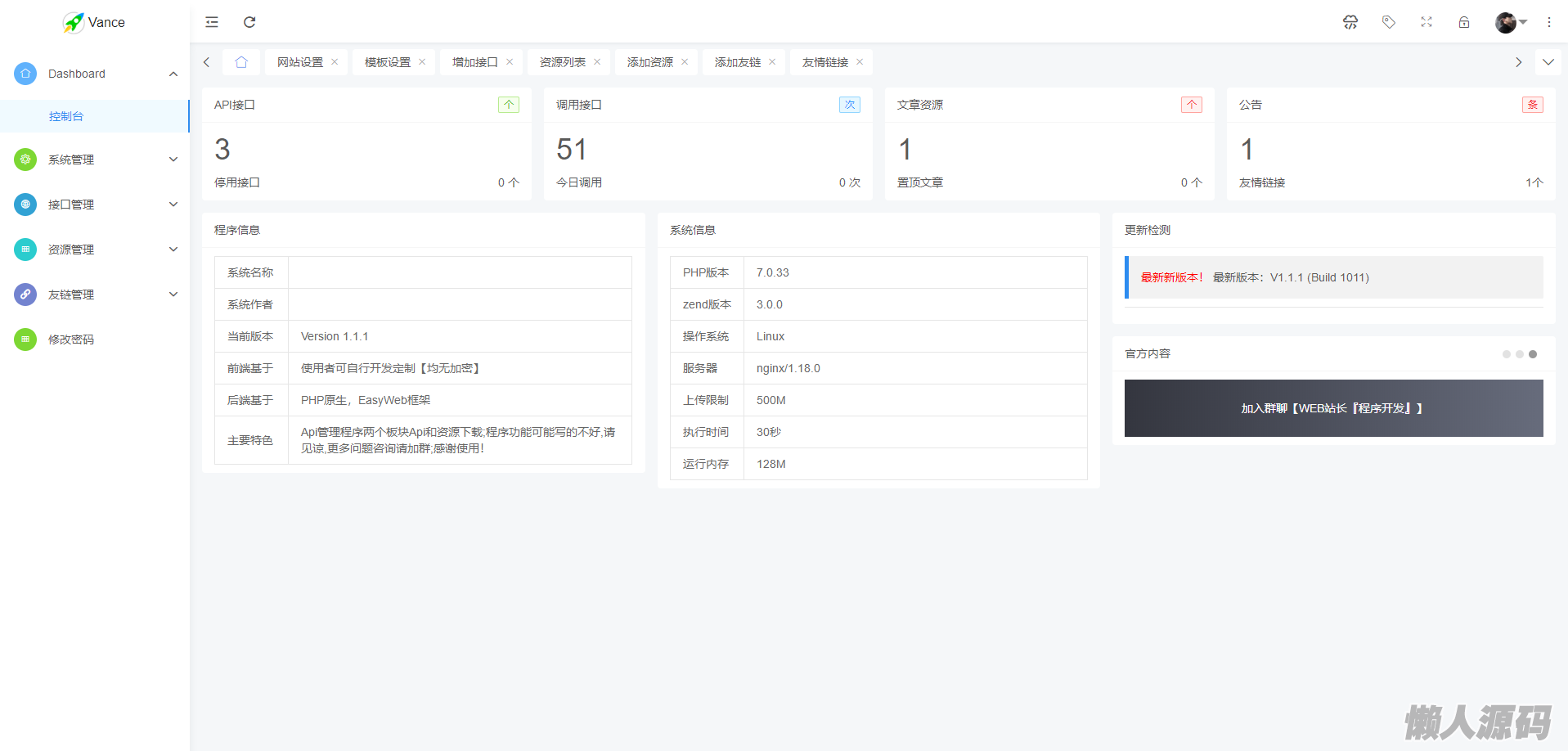 懒人源码 » 2023全新API接口管理系统PHP程序源码 | 多用户端 | 多模板