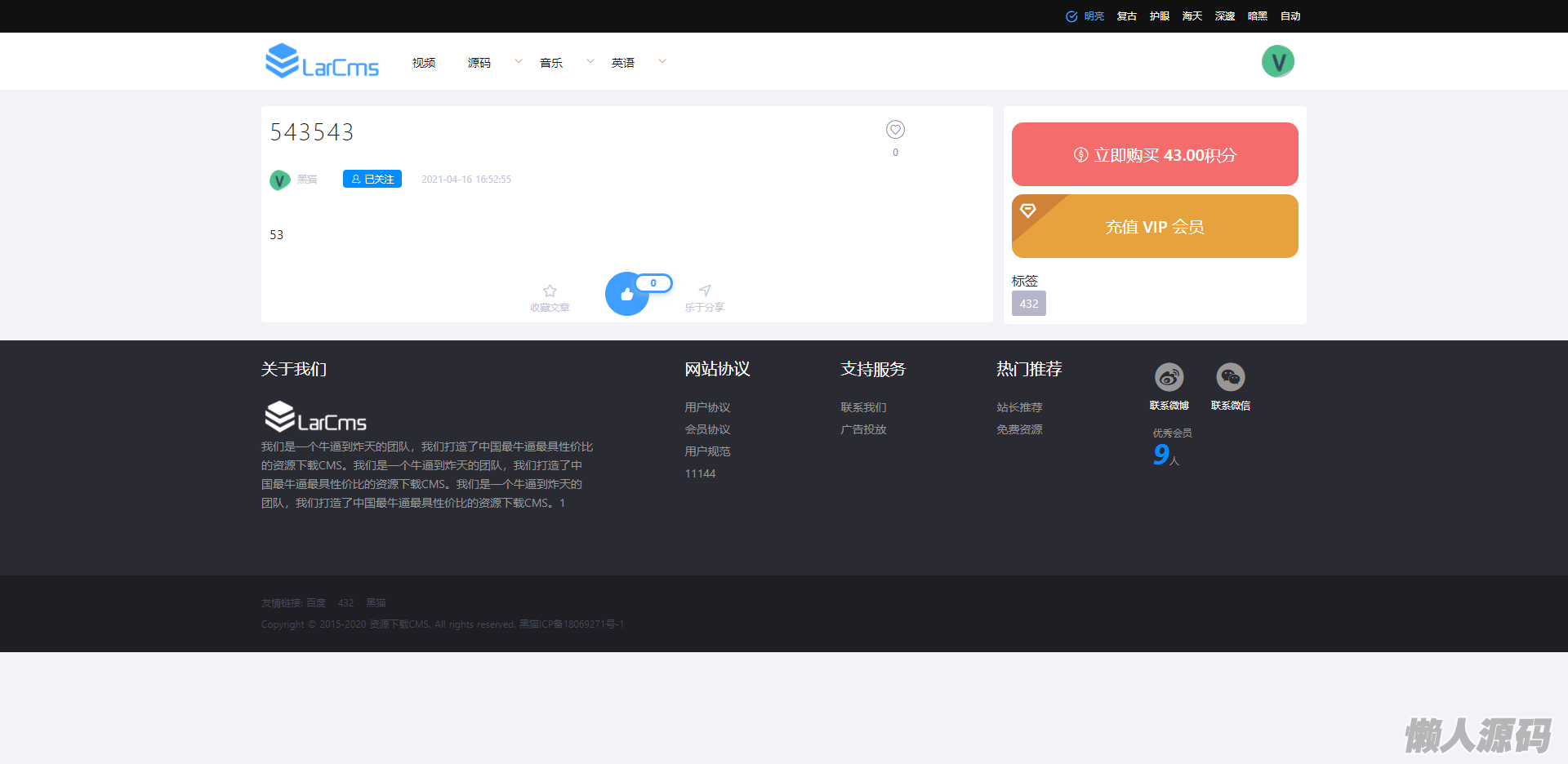 Larcms虚拟资源付费系统源码 全开源