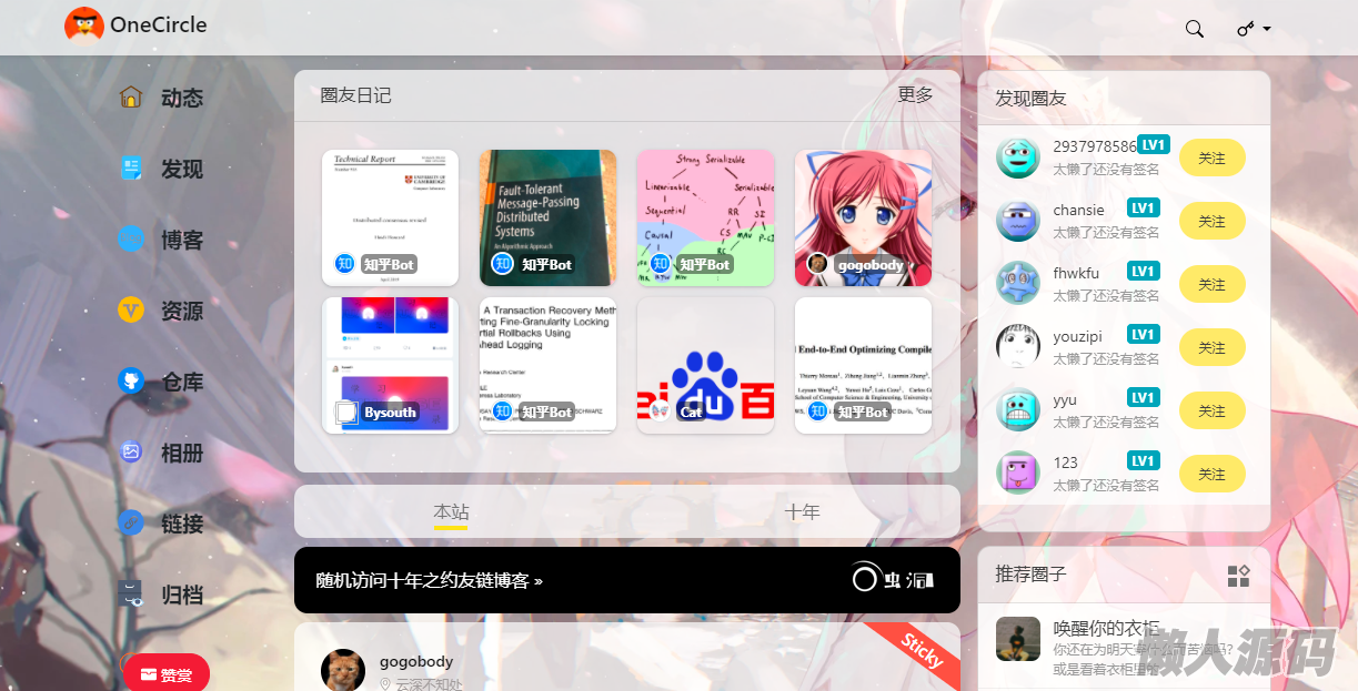懒人源码 » Oneclrle社交类圈子主题模板 Typecho