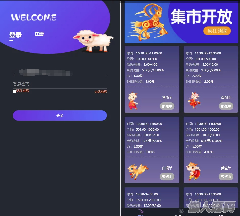 懒人源码 » 区块羊投资源码/支持预约 转让 领养 抽奖等等功能 全开源可二开!