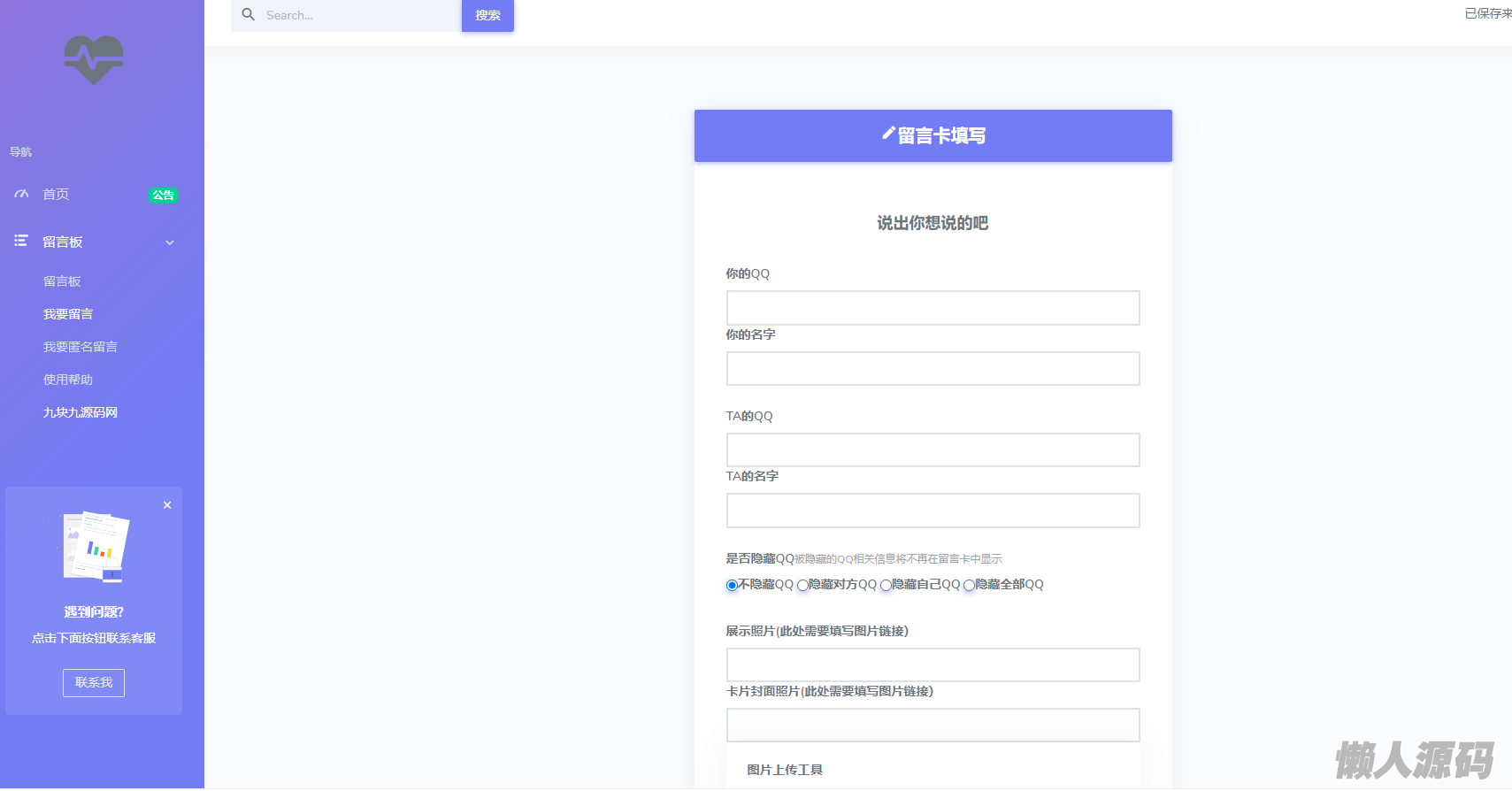 懒人源码 » 2023最新全开源在线留言系统源码 匿名留言网站系统源码下载