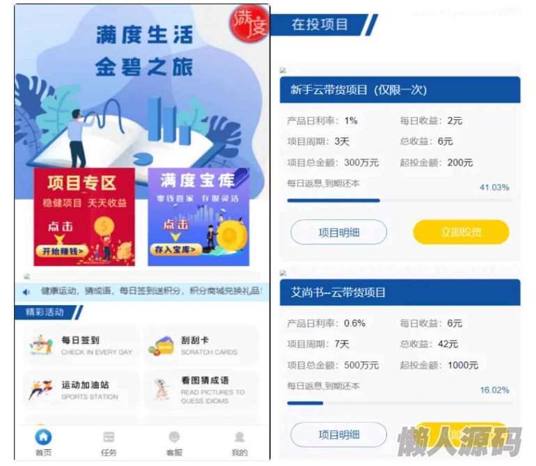 懒人源码 » 满度投资理财 带余额宝 合约收益 p2p理财 积分商城 小游戏