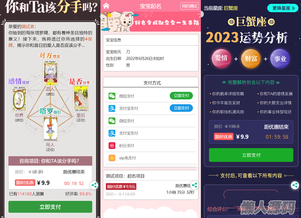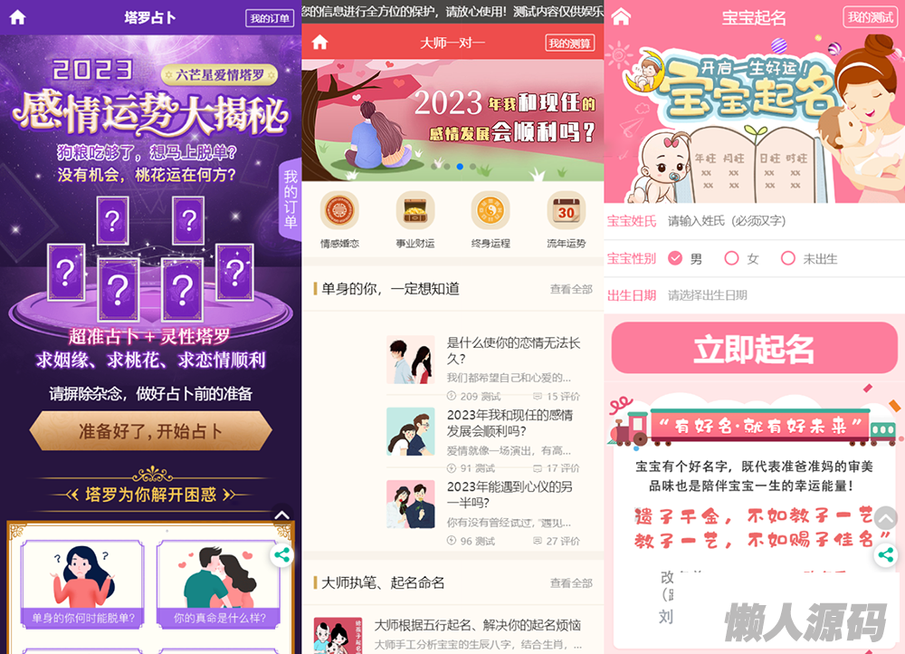 懒人源码 » 2023全新UI风水起名塔罗占卜星座运势测算网站源码 附搭建教程