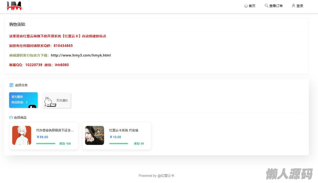懒人源码 » 红盟云卡免费开源发卡系统