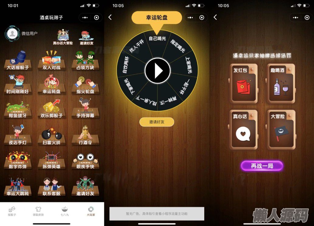 懒人源码 » 2023最新UI酒桌喝酒游戏小程序源码 娱乐小程序源码 带流量主