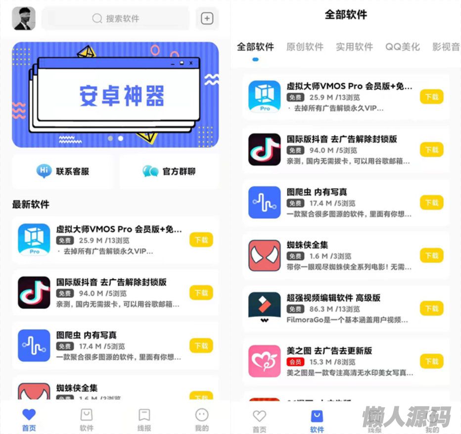 懒人源码 » 最新软件库(应用市场)APP源码前端+后端整套独立后台去授权修正版无加密源码