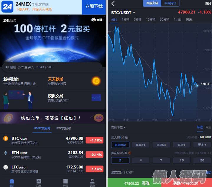 24mex/区块链交易所/BTC币安火币合约/杠杆/OTC/数字资产交易,(前后端源码)
