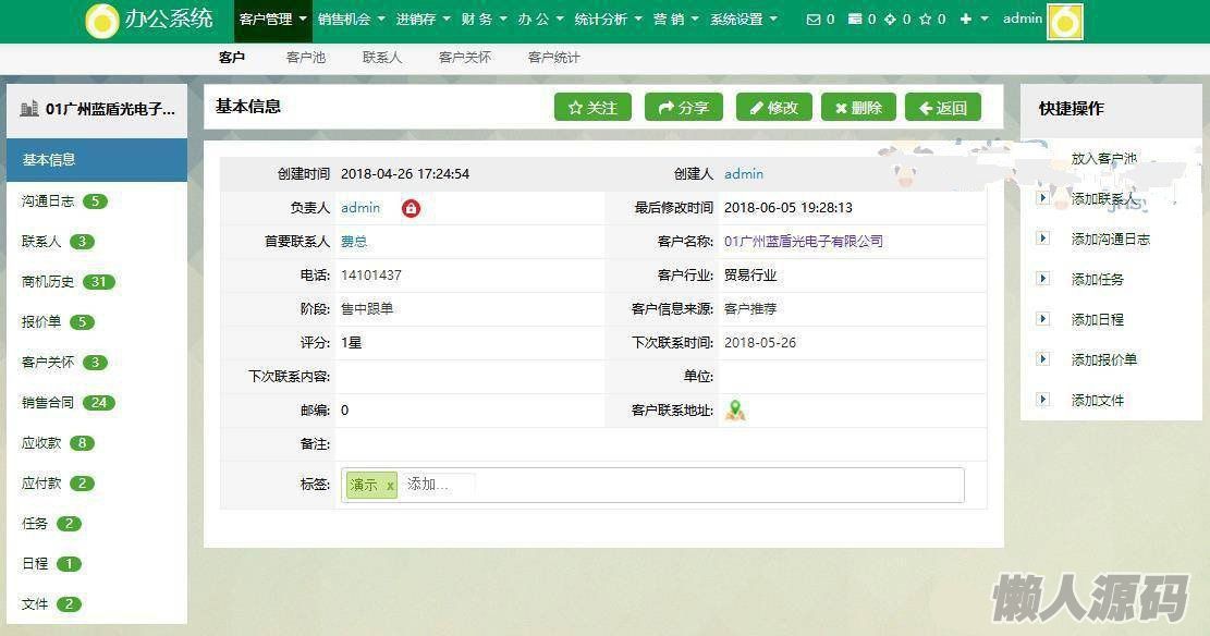 说是crm,其实就是一个完整的ERP系统了。亲自部署测试了一下,代码完整可用,没有加密和后门。
