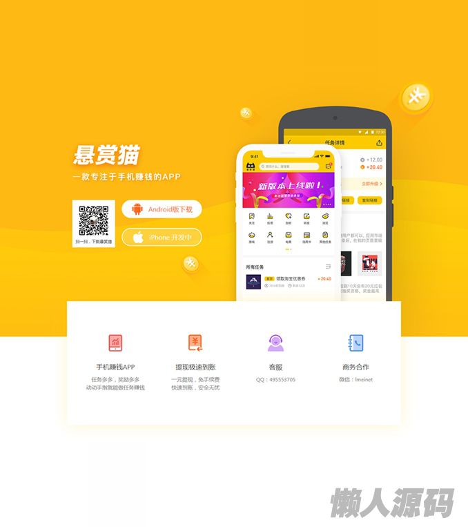 懒人源码 » 悬赏猫任务官网源码一款非常简约漂亮的APP下载单页自适应手机端