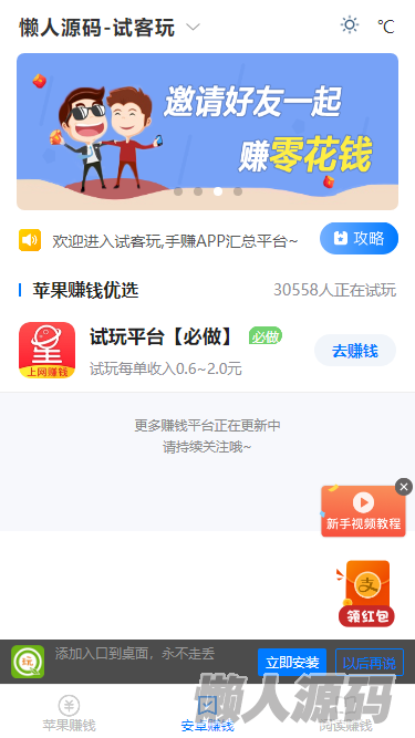 懒人源码 » 手赚网整站源码,游戏试玩平台源码,可封装APP的,手机版自适应,帝国cms7.5开发