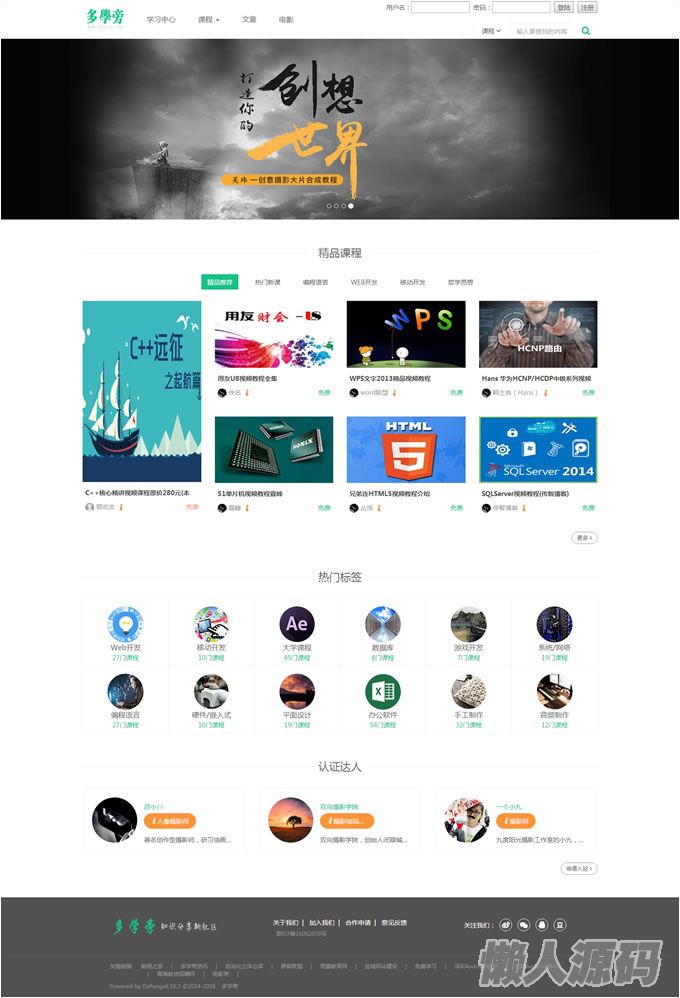 懒人源码 » 自学网在线课程教育网站源码,在线课程视频,自适应手机,帝国cmsV7.5内核