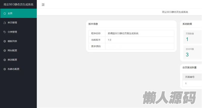 懒人源码 » 雨尘SEO静态页面生成系统最新版本源码v1.3秒钟可生成上千条单页面SEO必备神器