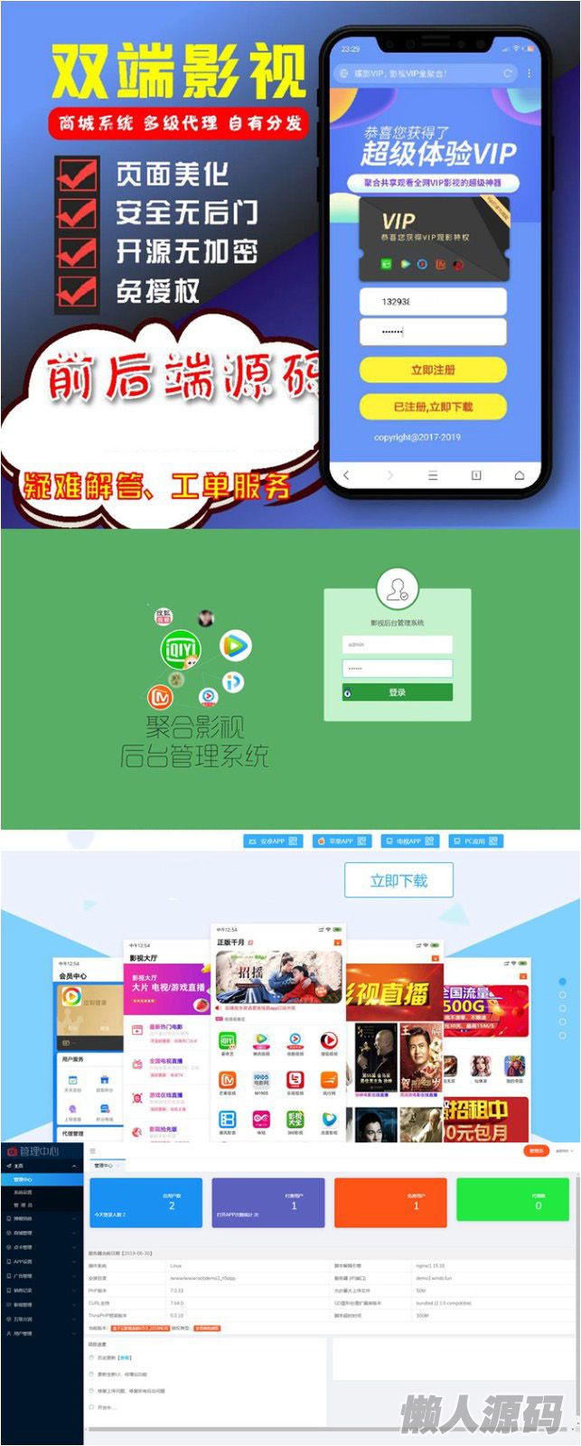 懒人源码 » 全新双端影视app系统,前端app+后端控制,全新V3后台,页面美化,开源无后门新增搜索接口