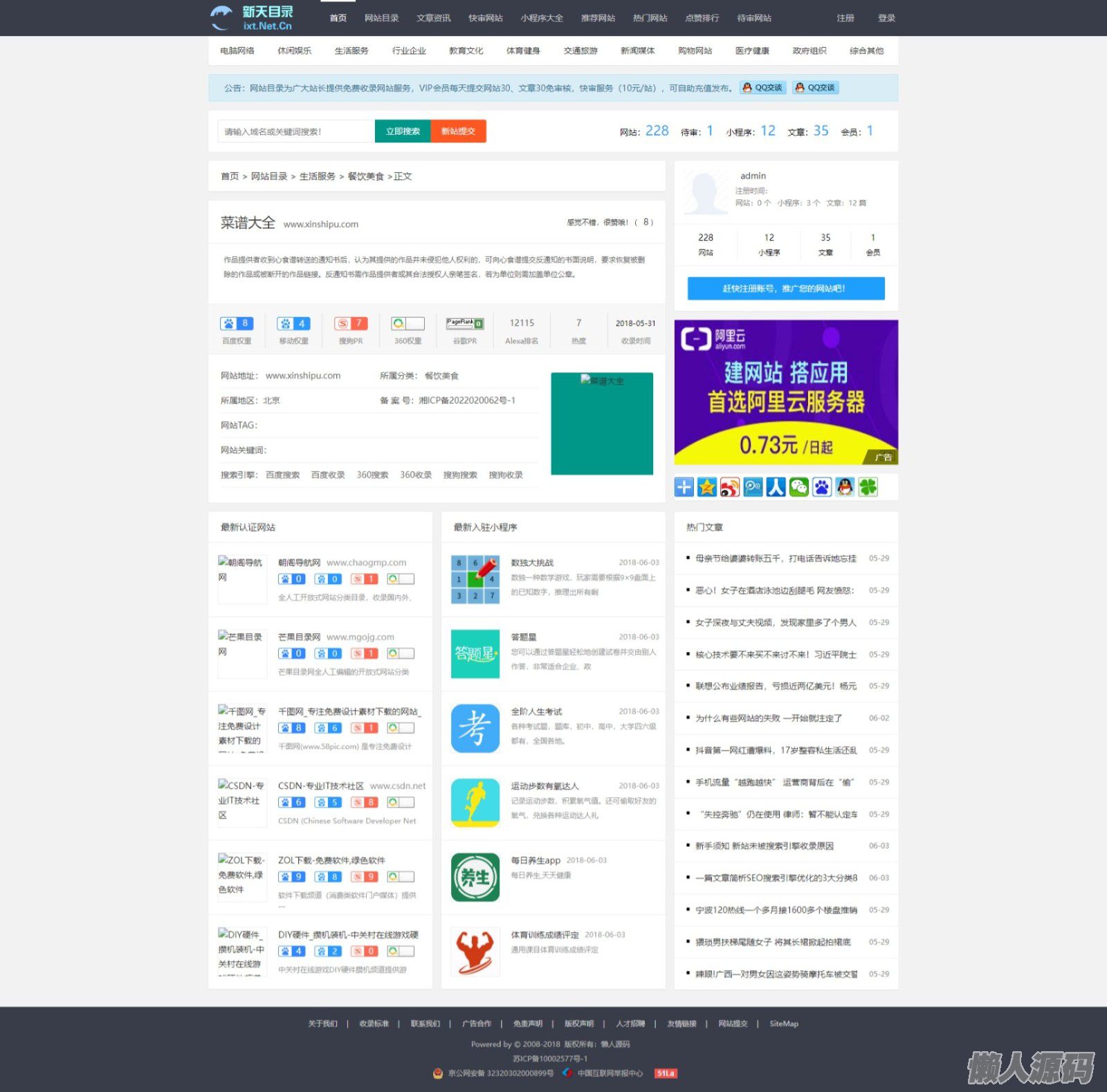 懒人源码 » 网站大全目录网整站源码,支持网址提交,小程序提交,带会员投稿功能,帝国CMS内核