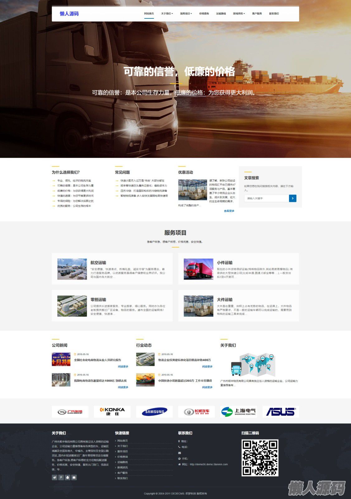 懒人源码 » 物流货运仓储通用服务型企业展示网站源码,大气响应式效果,自适应手机
