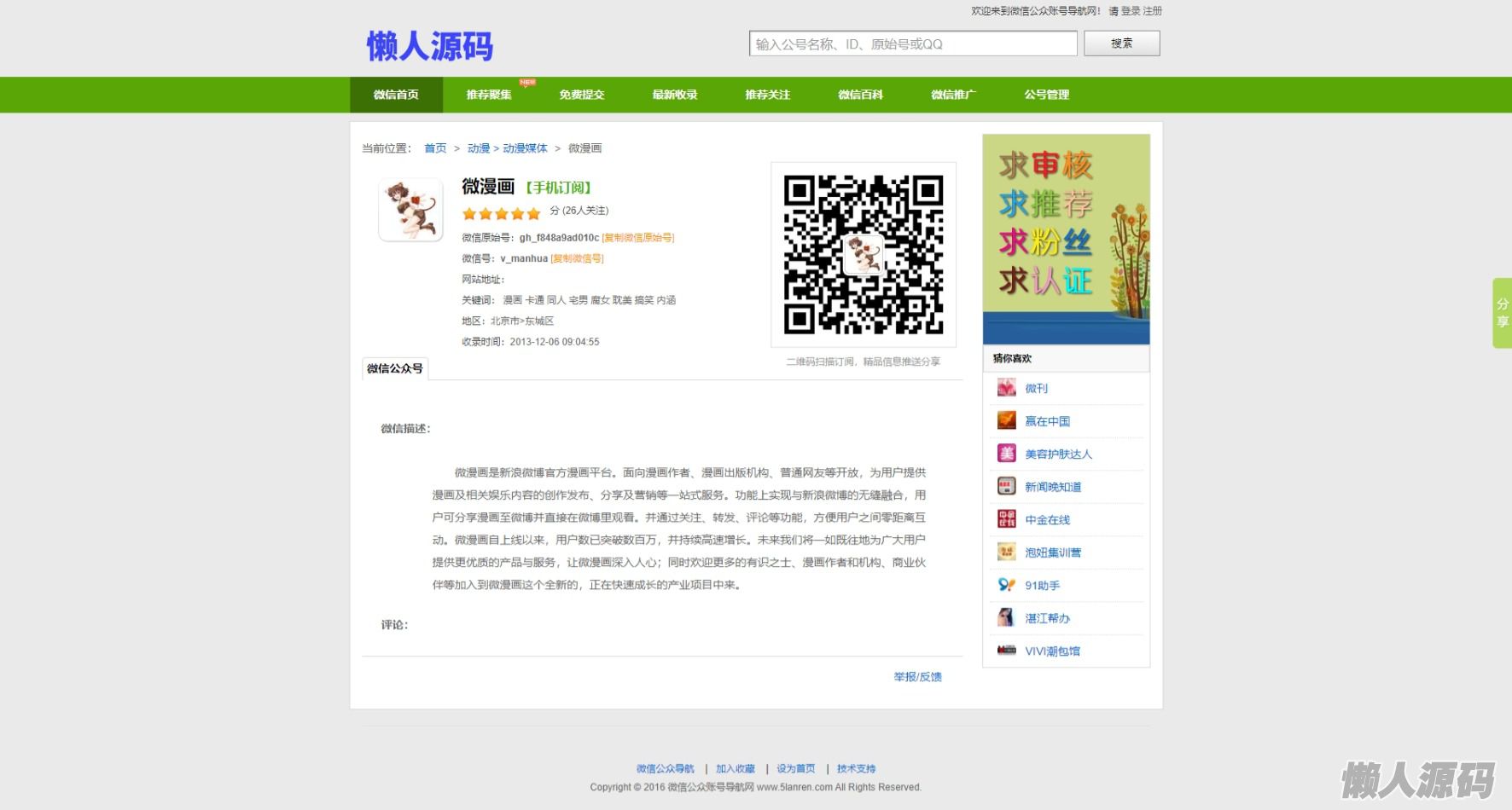 懒人源码 » 二维码导航网站,微商货源导航网站,微信公众号导航网站完美版,适用各种手机导航站点