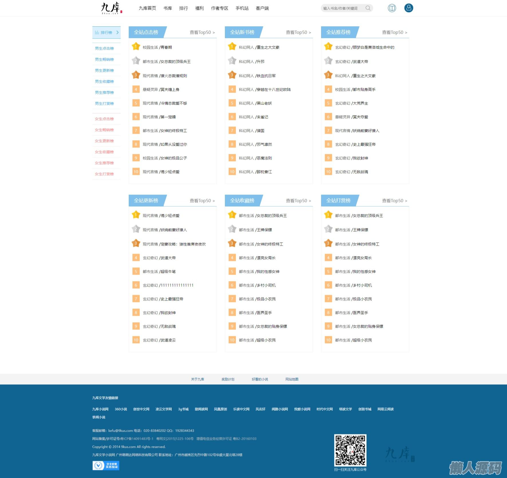 懒人源码 » 仿九库小说网站九库文学网帝国二次开发小说源码小说程序+支付接口+wap+VIP书籍阅读