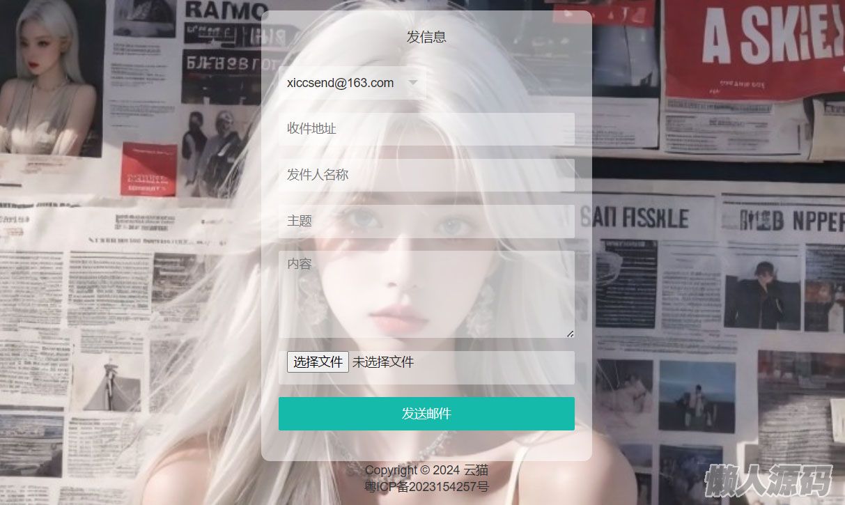 一款免登录发送邮件,支持发送附件,后台可添加邮箱,前台可选择发送邮箱