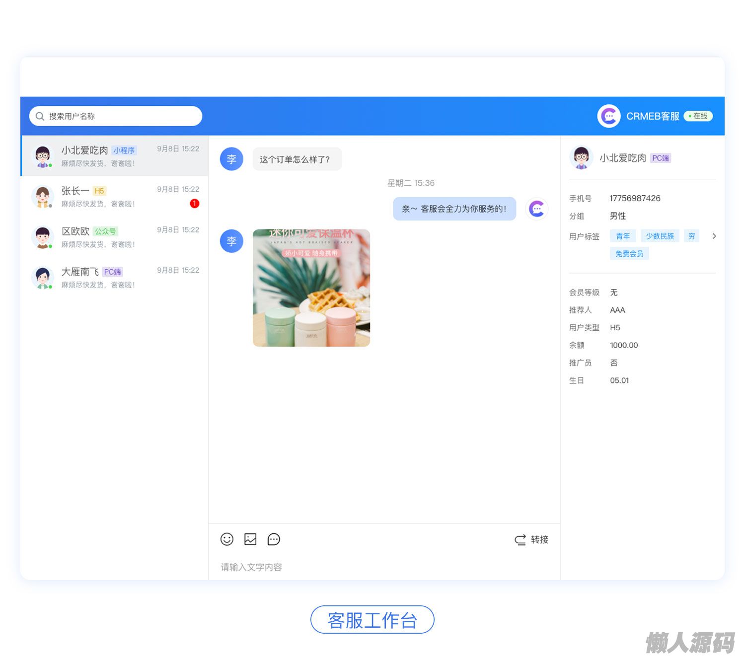 懒人源码 » CRMChat网页客服系统源码,支持H5网页接入