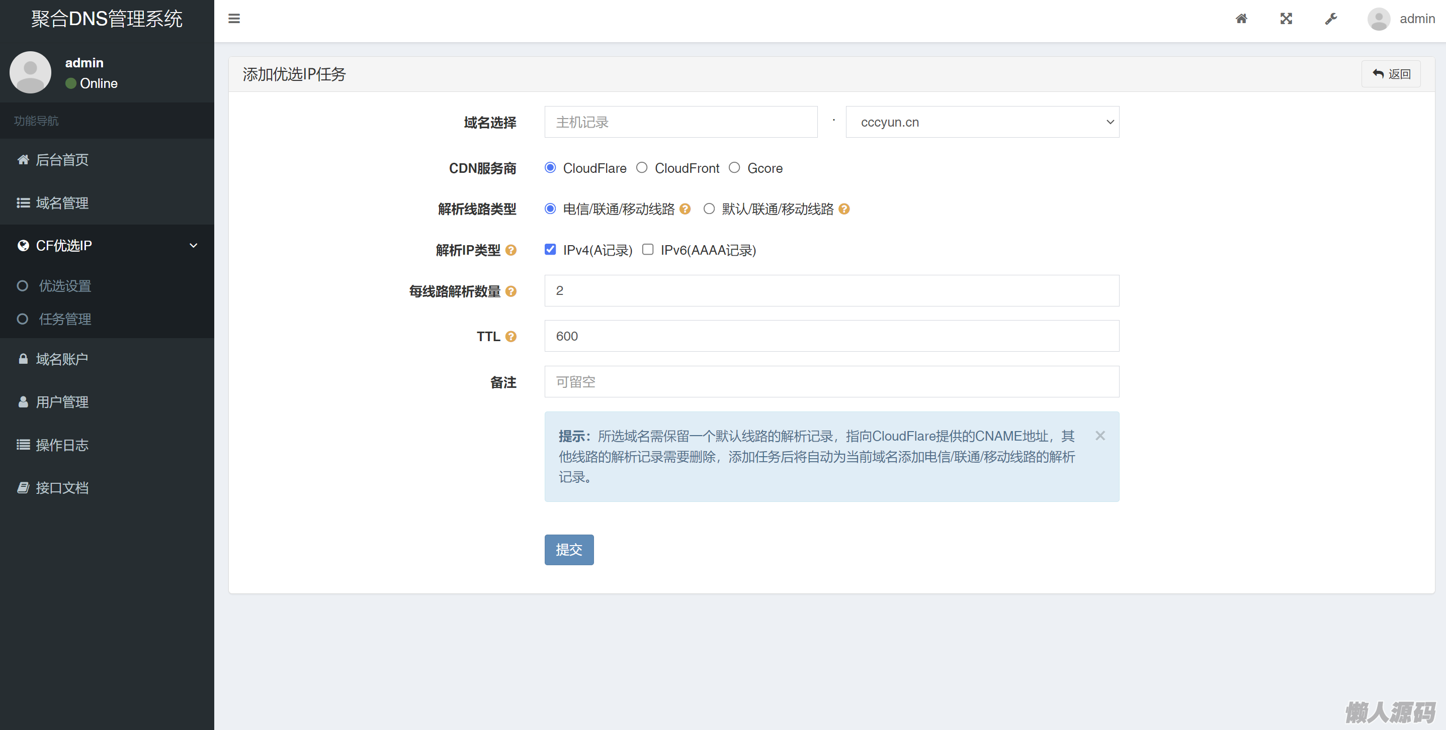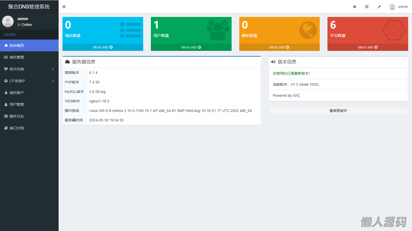 懒人源码 » 2024最新彩虹聚合DNS管理系统源码v1.3 全开源