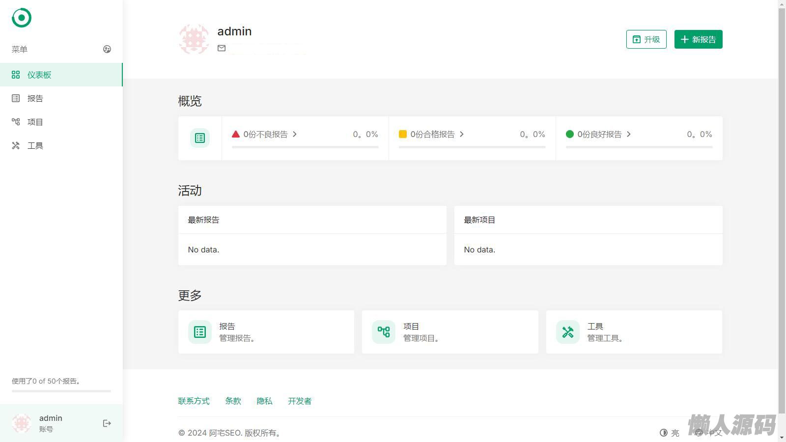 懒人源码 » 轻量SEO分析报告程序网站已开心去授权