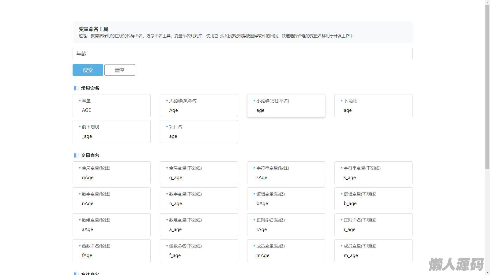 懒人源码 » 在线变量命名工具前端源码