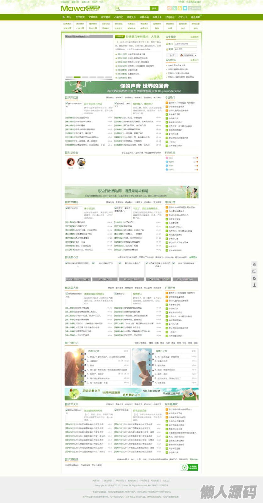 懒人源码 » 新闻文章类网站,仿美文网整站源码,在线投稿+手机端,适合做高权重文章新闻类网站