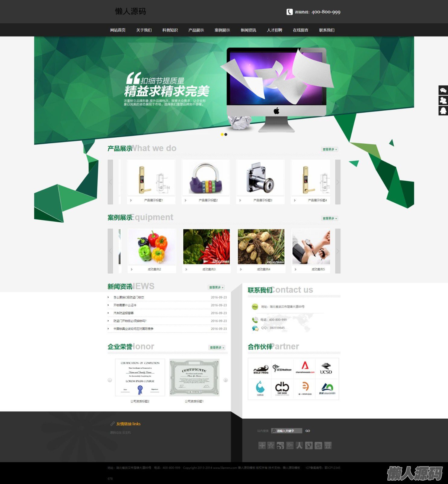 懒人源码 » 大气绿色企业通用网站,适合农业类、网络科技类、工作室、企业网站等,自适应手机版