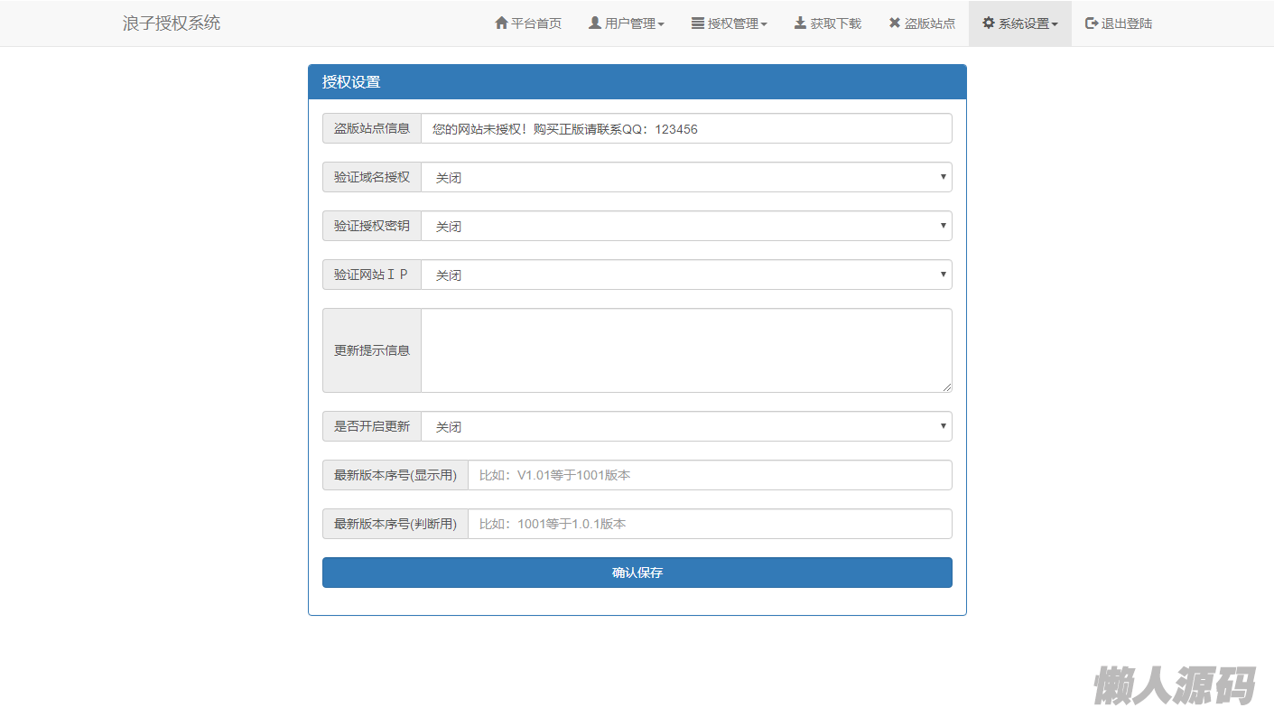 懒人源码 » 最新浪子授权系统网站源码 全开源免授权版本